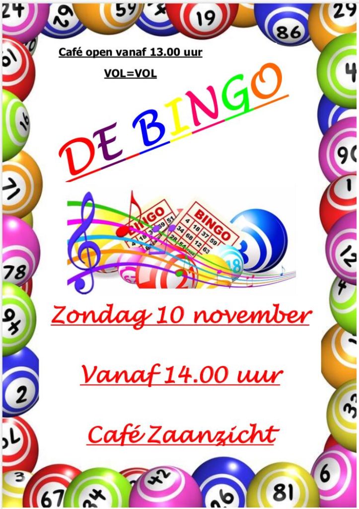 26 september 2019 Bingo Op zondag 10 november is er weer BINGOIedereen is welkom , maar kom op tijd want vol is volCafé is open vanaf 12.30 uur Related Posts BOKKETOCHT Bokketocht 26 & 27 mei BOKKETOCHIE About The Author cafe-zaanzicht Add a Comment Reactie annulerenJe e-mailadres wordt niet gepubliceerd. Vereiste velden zijn gemarkeerd met *Comment:*Name:* Email Address:* Website: Mijn naam, e-mail en site opslaan in deze browser voor de volgende keer wanneer ik een reactie plaats.